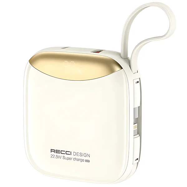Recci Stylish Power Bank Fast Charging With Dual Cable 10000mAh